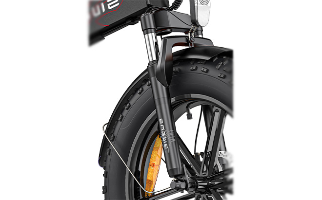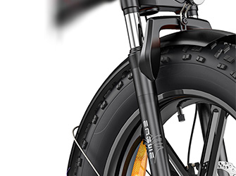 EP-2 PRO er designet med 20" x 4,0" fede dæk og en mekanisk affjedring foran, som giver fremragende stødabsorbering og stabilitet i ujævnt terræn. Disse funktioner sikrer en jævn og behagelig kørsel, uanset om du er på stranden, i bjergene eller i byens gader.