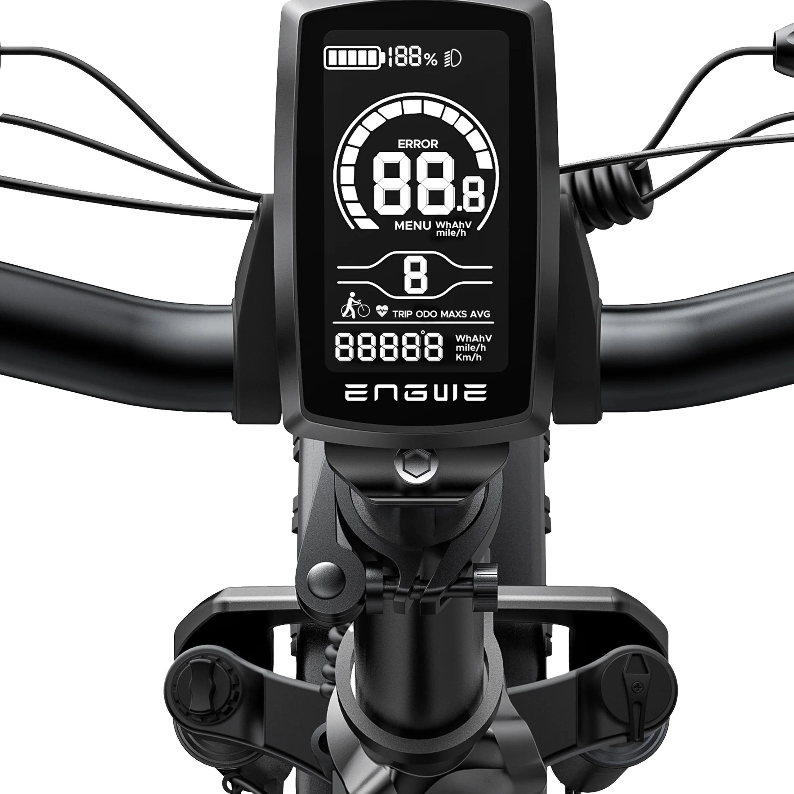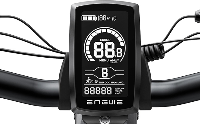 Cyklens LCD-display viser data i realtid: hastighed, tilbagelagt distance og batteriniveau. Det giver dig også mulighed for at vælge køretilstand og justere effektniveauet . Med dette display kan du overvåge og styre din tur.