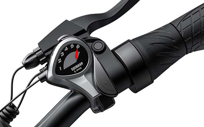 Cyklen er udstyret med mekaniske skivebremser fra TEKTRO, som giver pålidelig bremsekraft under forskellige forhold. Shimano 7-trins gearsystemet giver dig mulighed for nemt at tilpasse dig forskellige terræner og hastigheder.