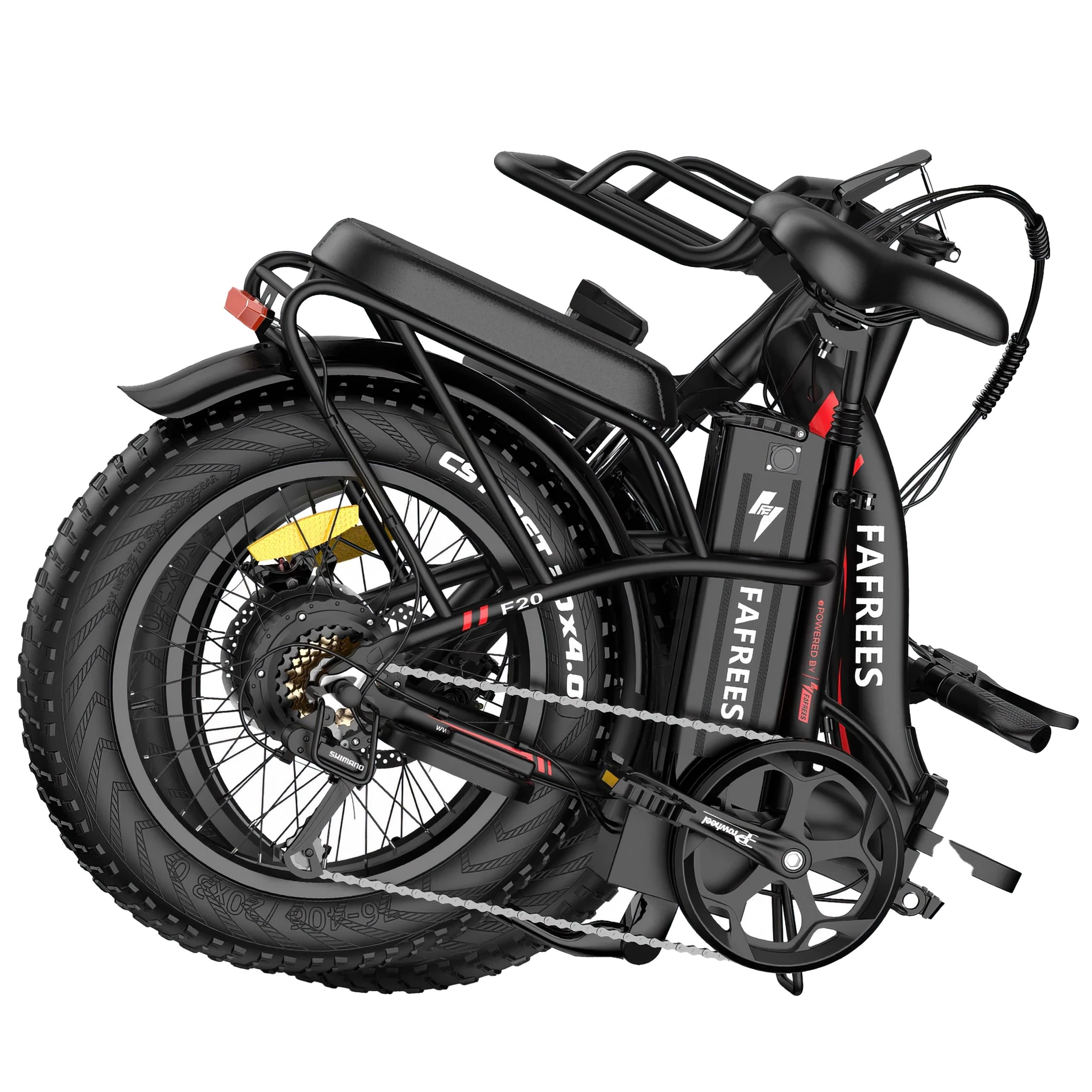Fafrees F20 Max er bygget til at passe til dit liv, ikke omvendt. Når du skal opbevare den i en lille lejlighed eller tage den med i offentlig transport, kan cyklen hurtigt foldes sammen ved stellet, styret og pedalerne, så den kun fylder 88 × 38 × 70 cm (34,6" × 15" × 27,6").