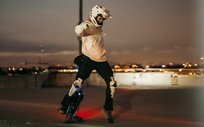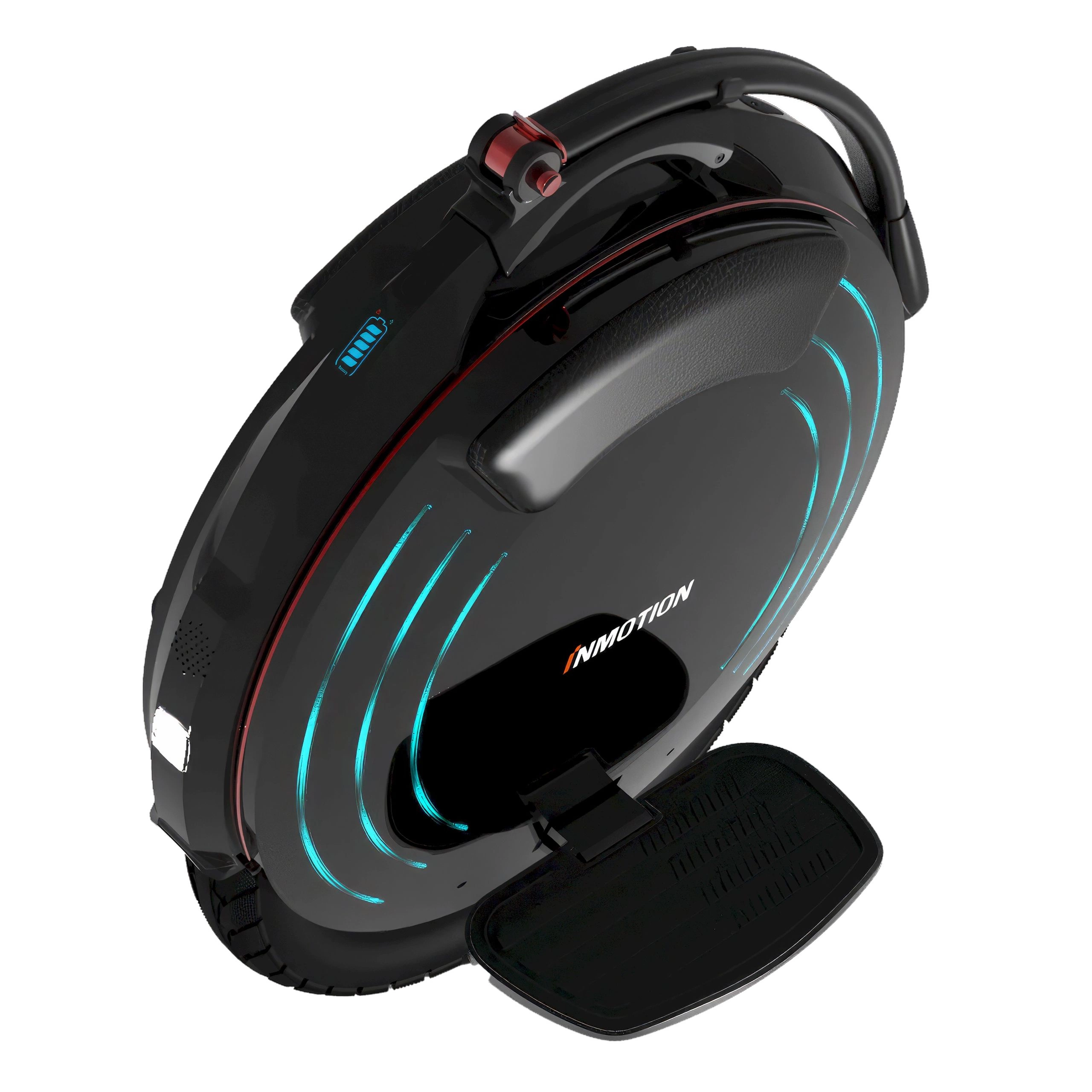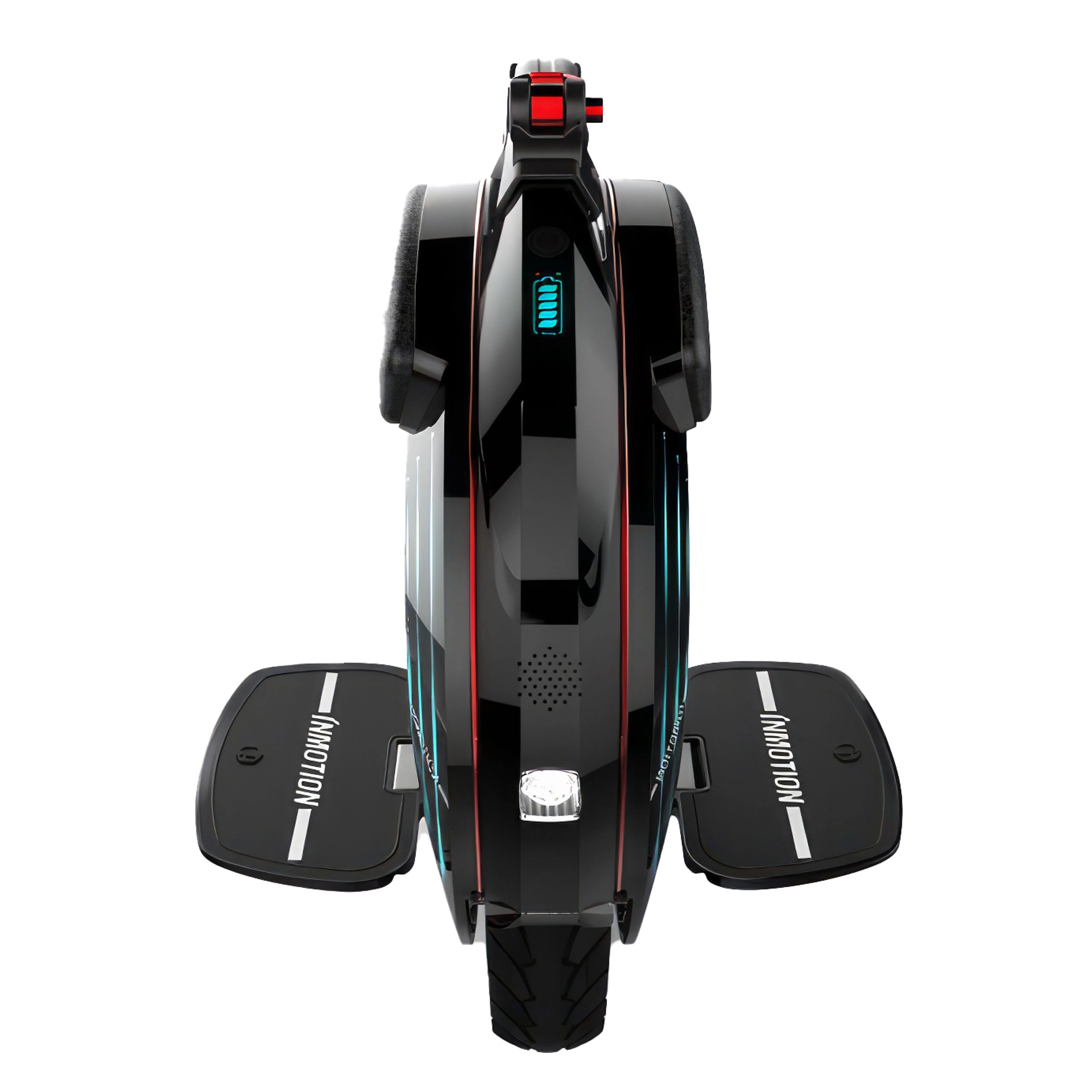 InMotion V10F er et blikfang. Dens slanke, futuristiske design er et ekko af tidligere modellers raffinement, samtidig med at den skubber til grænserne for æstetikken i elektriske ethjulede cykler. De polstrede sidepuder giver komfort og bidrager til hjulets strømlinede udseende. LED-ringene, der kan tilpasses, gør din tur personlig og er et statement, uanset hvor du går.
