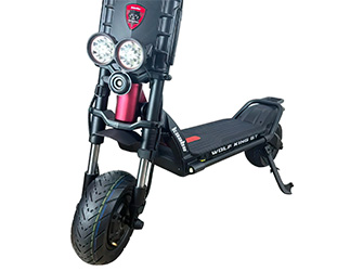 Takket være det avancerede hydrauliske affjedringssystem og det unikke forgaffeldesign garanterer Wolf King GT Pro en jævn og behagelig kørsel på både barske stier og i byterræn. Derudover tilbyder det rummelige platform generøs ståplads, så man kan køre længere ture uden at blive træt.