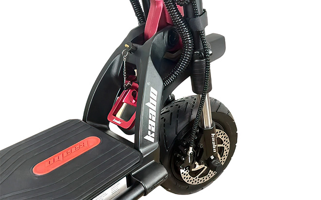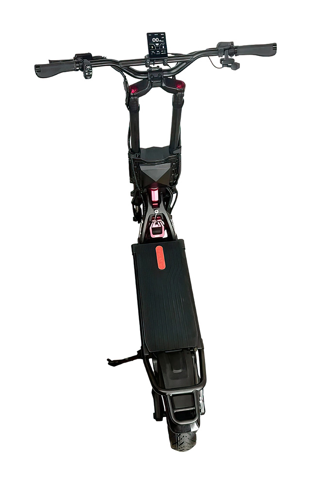 Når den skal opbevares, gør foldemekanismen den nem at håndtere. Når systemet er aktiveret, sikrer det, at elektrisk scooter står fast uden uønsket bevægelse af ratstammen.