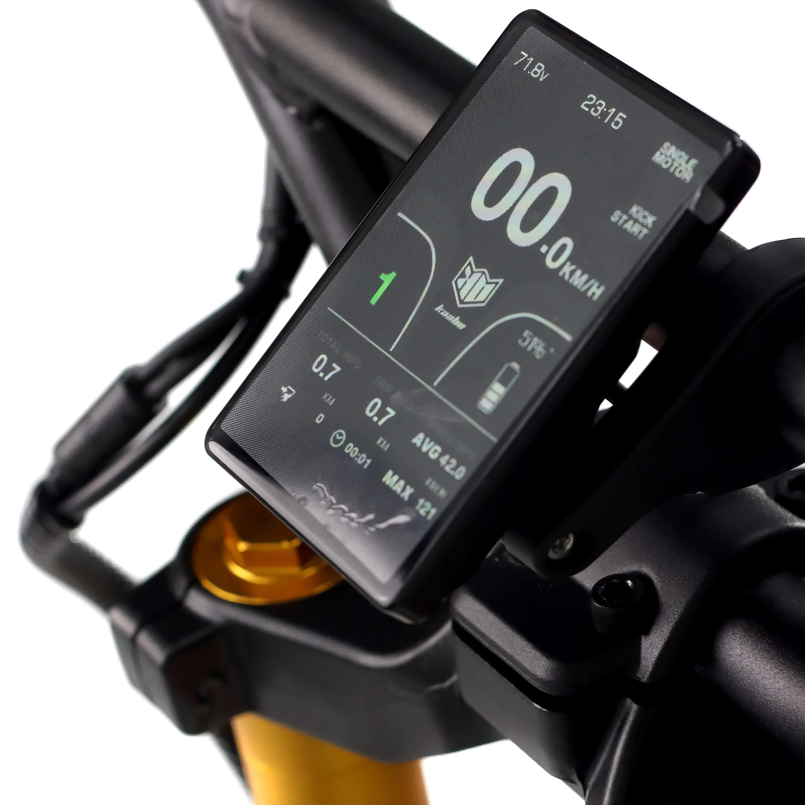 Hold dig informeret og i kontrol med det 4,2" store TFT-farvedisplay. Her kan du finde alle de nødvendige oplysninger, herunder hastighed og resterende rækkevidde. Med antirefleks- og autodæmpningsfunktionerne er det nemt at justere indstillinger eller tilstande. For din sikkerheds skyld har den adgangskodebeskyttelse. Den responsive tommelfingergas sikrer fin hastighedsmodulation.
