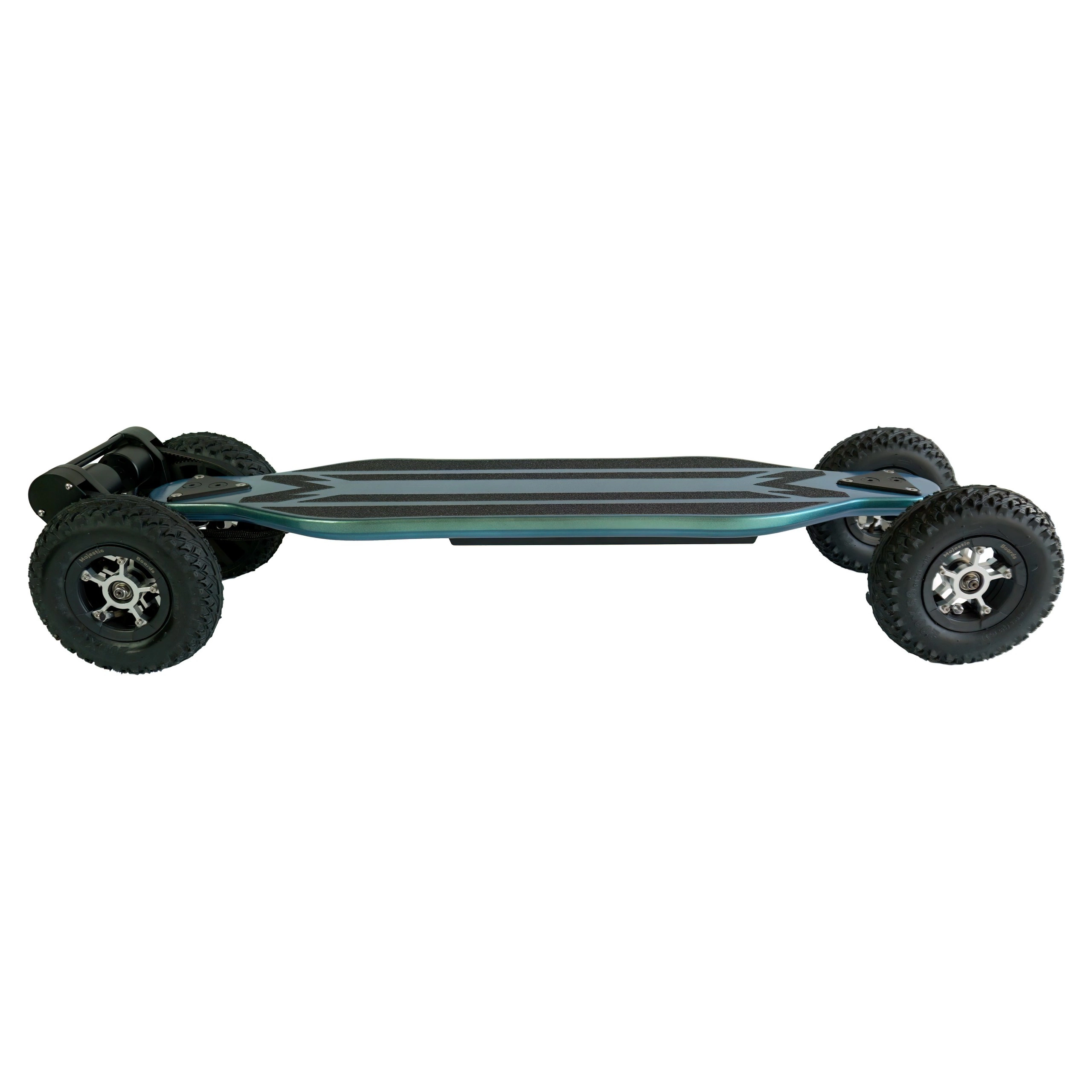 Inkluderet i kassen: - Majestic Boards elektrisk longboard fremstillet i Polen - Trådløs fjernbetjening - Oplader - Ekstra sæt polyuretanhjul: 4 hjul, 2 drivstativer, 2 drivremme, 2 motordæksler, 8 lejer til hjul, 2 lejer til stativer - Et sæt skruenøgler, der gør det muligt at justere brættet og stramme alle skruerne - Brugervejledning og en manual til udskiftning af hjul