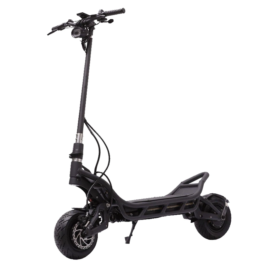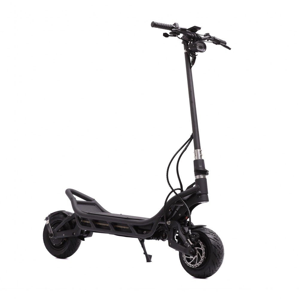 Den elektriske elektrisk scooter er støjsvag uden at gå på kompromis med effekten takket være 50A sinusbølge-controllere. To 165 mm justerbare hydrauliske spiralophæng og 11 tommer slangeløse dæk kører jævnt i ethvert terræn. Den intenst lysstærke forlygte på 2000 lumen giver en klar bane under dårlige lysforhold. Det motorcykelinspirerede horn i høj kvalitet sikrer, at du bliver hørt, når du har brug for det. Det ekstra brede styr er yderst behageligt på lange ture. Hvis du er høj&mpanel;er dette et bonuspoint for dig.