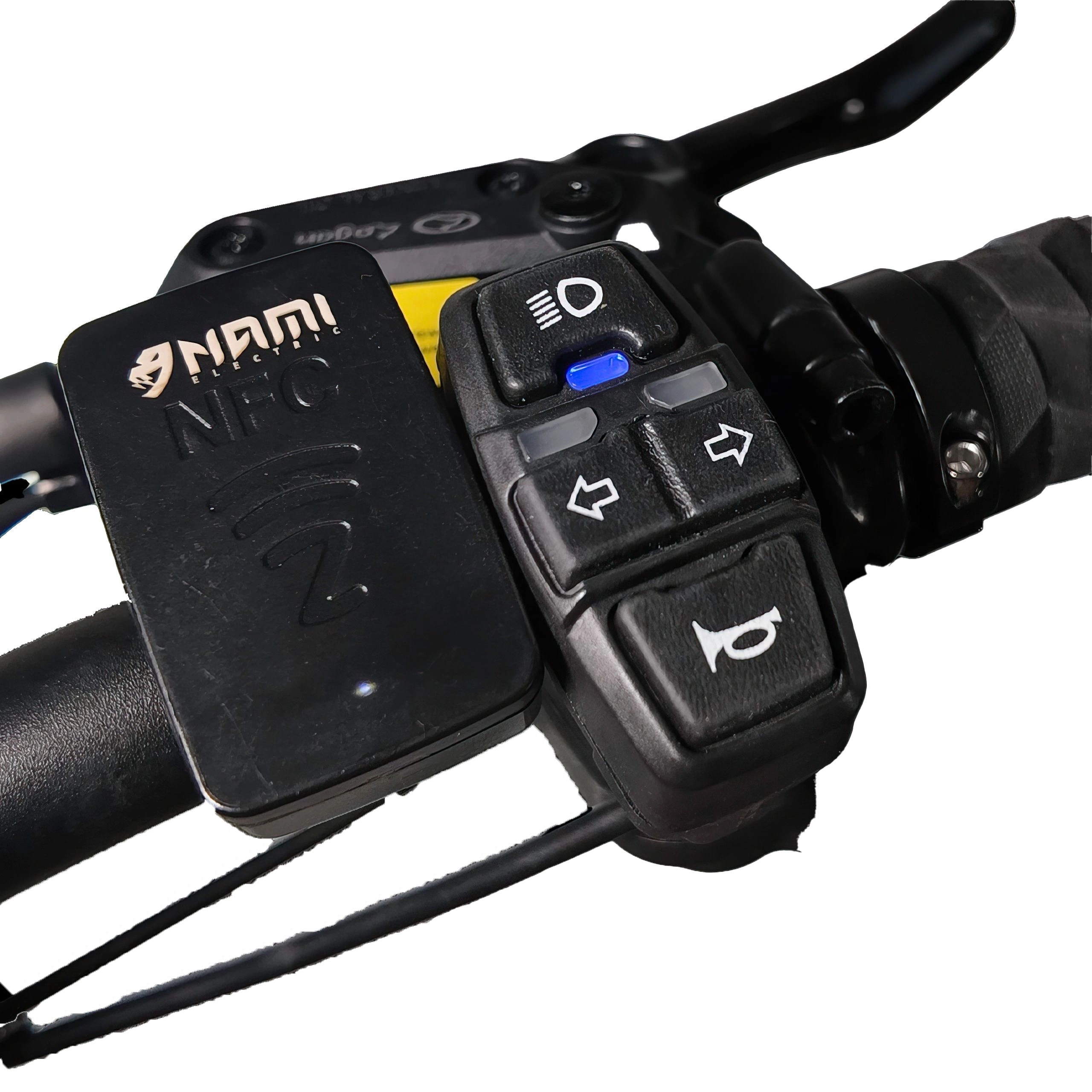Vær sikker dag og nat med Nami Super Stellar's klare LED-lys. Den har lys foran og bagpå samt blinklys som en bil. Skærmen er let at læse og viser dig vigtige oplysninger: hvor hurtigt du kører, og hvor meget batteri der er tilbage. Den har endda et særligt NFC-kort til at starte den med. Bare tryk og kør!